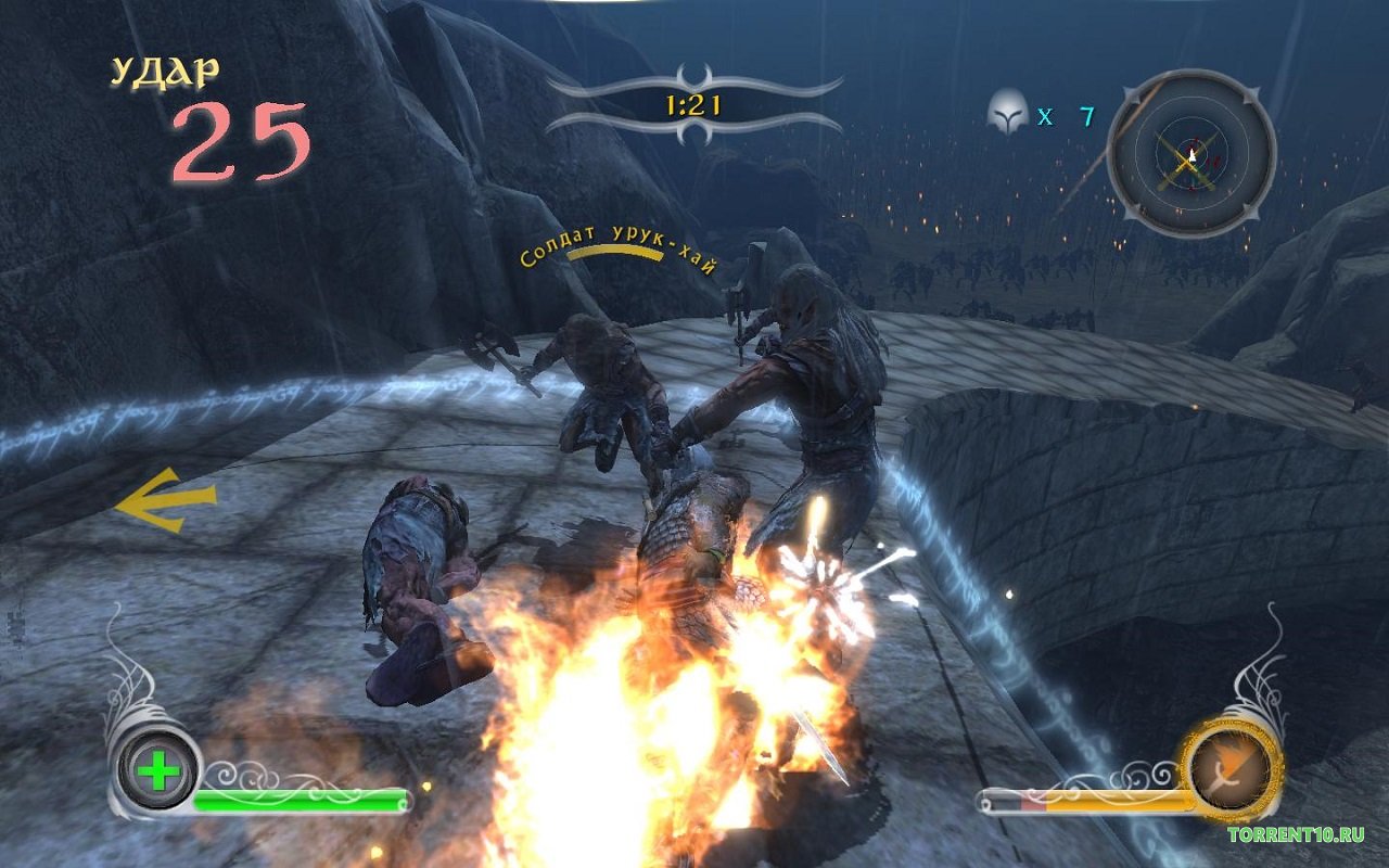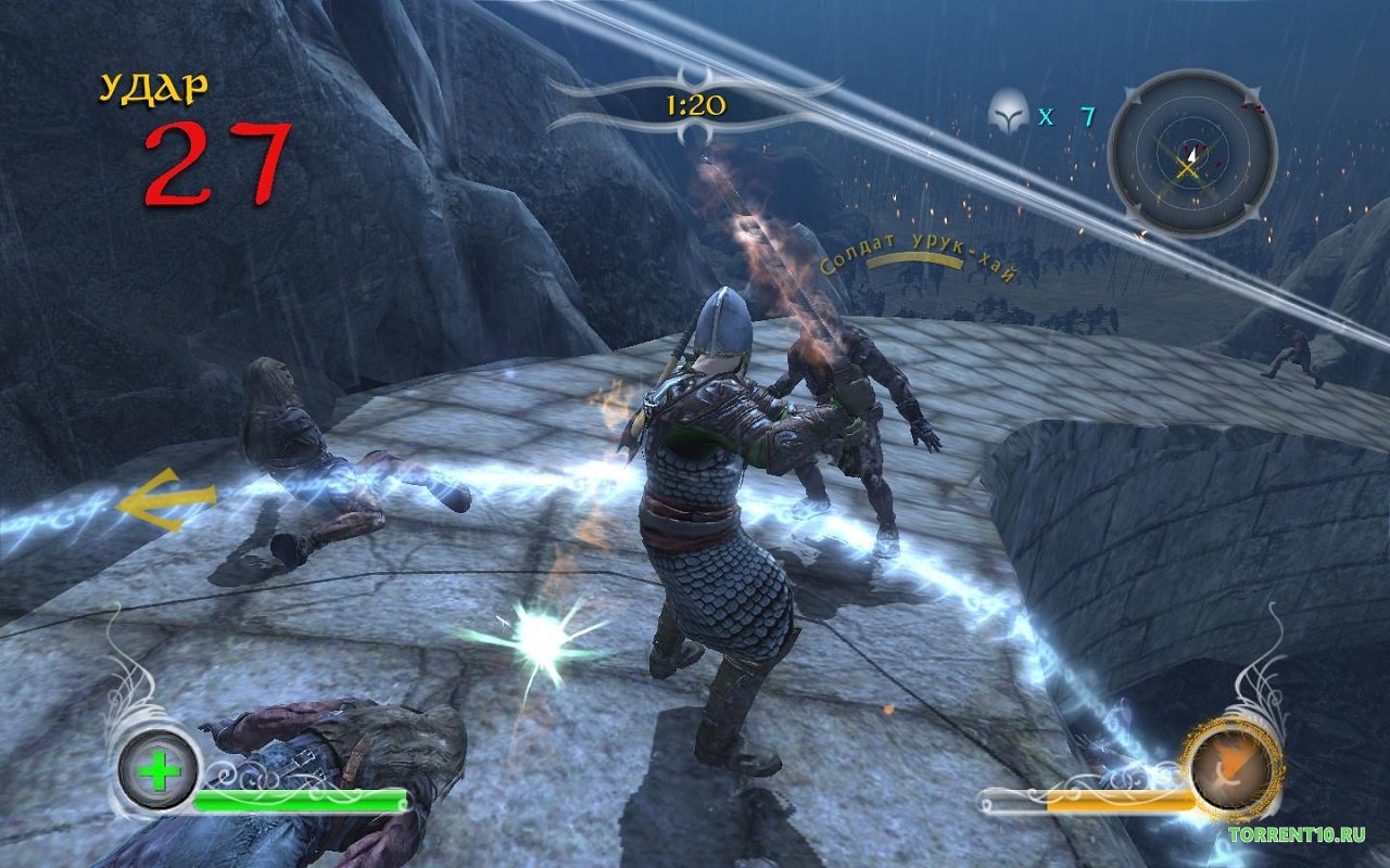 Властелин Колец Противостояние является типичной экшен-рпг, только с увлекательным сюжетом и интересным геймплеем. Графика здесь довольно сносная, хотя и относится к разряду средних параметров. Помимо обычной одиночной кампании, геймер может поиграть и в многопользовательский режим. Выбирайте своего героя и контролируйте его, управляя ним и направляя на правильные, добротные действия. Уничтожайте вражеские поселения, захватывайте территории, убивайте врагов один на один и в массовых сражениях. Вы сможете выбрать любого героя из серии Властелин Колец. Здесь присутствуют абсолютно все персонажи, которых вы видели или в книге, или в фильме. Развивайте героя и уделяйте ему огромное внимание, потому что он гораздо сильнее обычных персонажей, боевых юнитов, которых “клепают” и “штампуют” в казармах. Накапливайте энергию для атаки, и когда у вас будет достаточно маны, герой сможет выполнить супер-удар, способный нанести огромное количество урона вражеским юнитам. В самом начале игры вы будете достаточно слабым героем, но затем, в процессе развития и по мере прохождения вы достигнете небывалых высот.