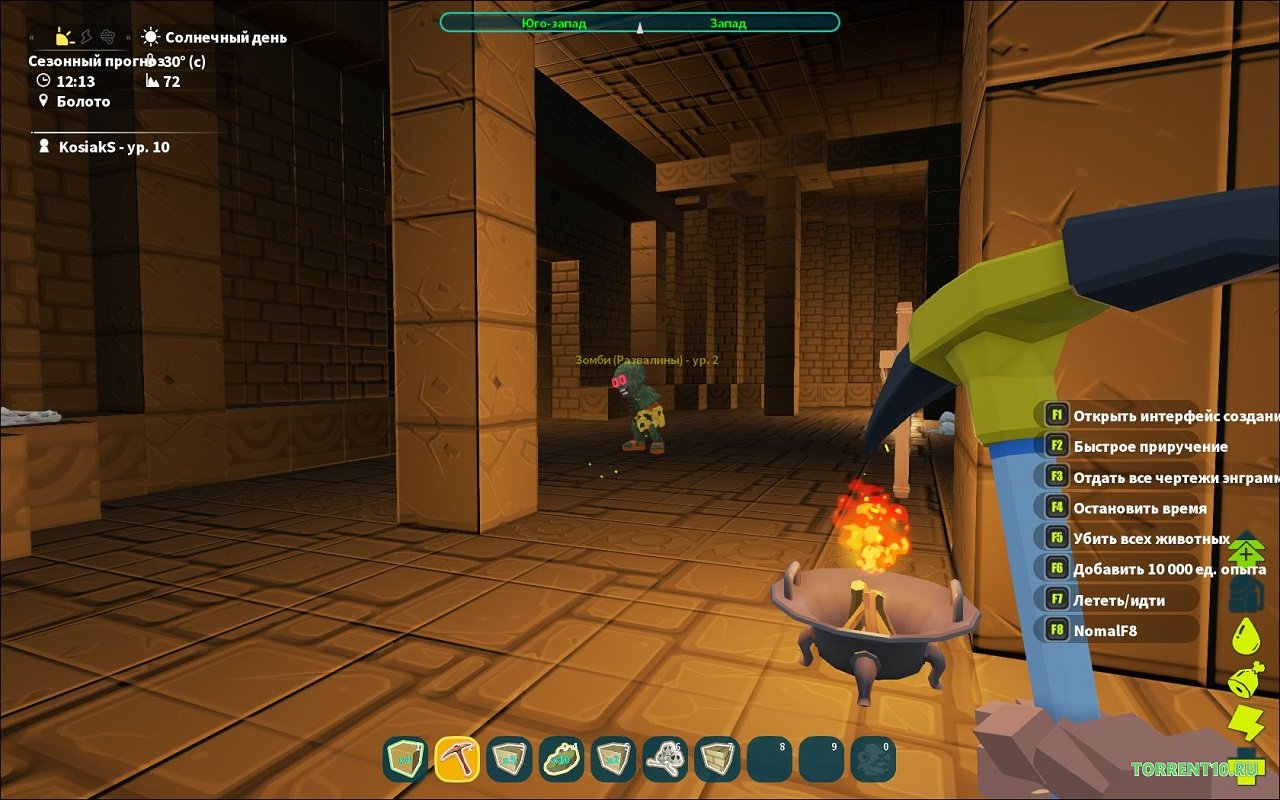 Также у вас будет возможность с помощью животных сражаться с вашими врагами. Для сражений вы можете создать свое собственное оружие, будь то меч, посох или что-нибудь потяжелее. Вашу фантазию здесь сможет ограничить только отсутствие необходимых компонентов. В процессе игры вы можете как набирать себе союзников среди других игроков, так и в одиночку верхом на тиранозавре громить всех подряд и защищать свои владения. Не имеет значения, что вы выберете, главное остаться в живых! Начинайте играть, и этот уникальный кубический мир захватит вас своим неординарным сюжетом, множеством абсолютно разных заданий и большим выбором локаций!