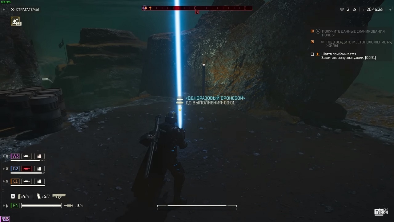 Stratagem challenge - это совершенно отдельная мини-игра, в которой вам нужно ввести определенную комбинацию, чтобы запросить поддержку. Позвольте мне напомнить вам, что все это происходит во время битвы, когда на вас нападают со всех сторон. На нее также можно нажать с помощью десантной капсулы. Или ранить друга ударом с воздуха. И я уже молчу о том, что саму капсулу тоже приходится ждать, а это не всегда кажется возможным. Буквально каждая секунда на счету. Но они должны быть эвакуированы с планеты, чтобы получить всю приобретенную добычу, в виде образцов различных редкостей и кредитов. Эвакуация на высоком уровне - самая сложная часть задачи. Врагов может быть бесчисленное множество, и вам придется буквально сражаться до прибытия космического самолета. Эпопея Helldivers 2 просто выходит за рамки масштабов. Это чувствуется повсюду, от многочисленных взрывов до постоянно звучащей пафосной музыки. Динамика боевых действий нарастает с каждой минутой, и кажется, что этот процесс невозможно остановить. И когда вы эвакуируете планету под оркестровую музыку, вас переполняет гордость и удовлетворение собой. Игра выглядит хорошо 2024. Она идеально оптимизирована как для консолей, так и для ПК. У него почти нет дефектов и впечатляющий FPS. Звук также слышен постоянно. Каково это, когда мой адский пес кричит "за демократию" после уничтожения очередного бага?" или просто издевается над поверженным врагом. Оружие сильно отличается друг от друга. Правда, арсенал не так уж богат. Но других преимуществ хватает.