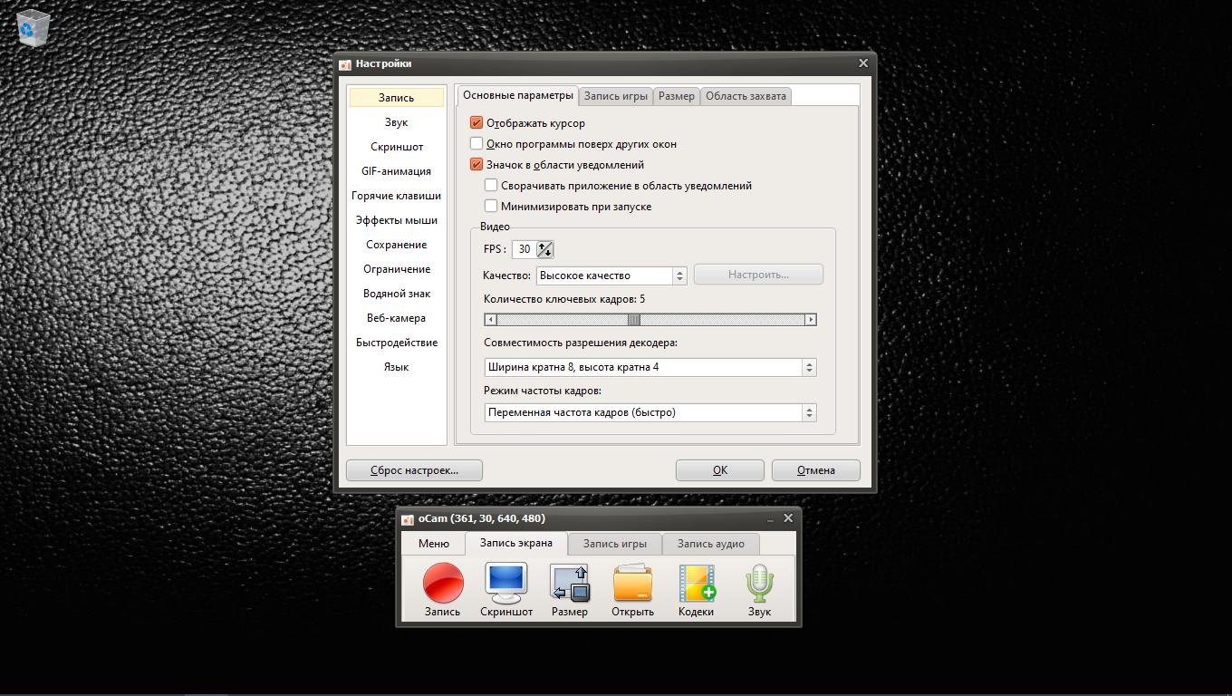 Системные требования oCam Screen Recorder