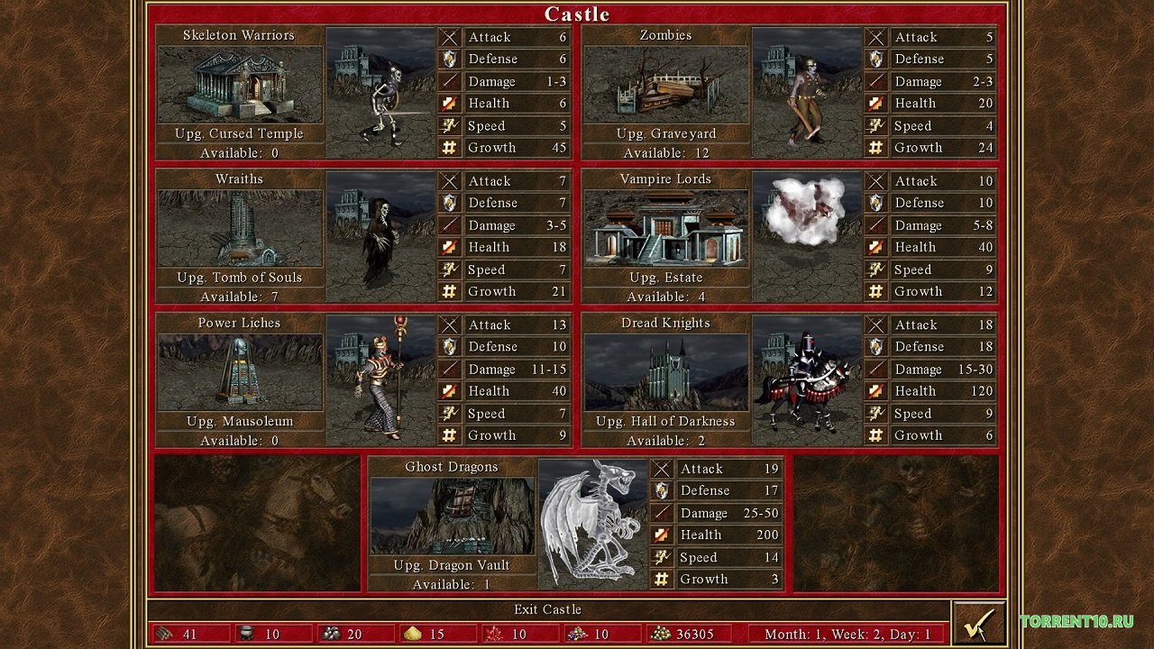 В игре есть несколько фракций, каждая из которых обладает своими уникальными героями, существами и замками. В замке можно нанять некоторое количество существ, которые прибавляются каждую неделю. Неделя – это 7 игровых ходов на глобальной карте. В каждом замке, ваших и вражеских, прибавляется определенное число существ доступных для найма каждую неделю. Нанимать вы их можете за золото и ресурсы. Чем дольше идет игра, тем больше армии у вас и у противника, чем быстрее вы начнете нанимать существ, тем лучше для решающей схватки. Разные фракции имеют свой особый баланс, который меняется в разных стадиях игры, есть фракции, которые рассчитывают на позднюю игру, а есть те, кто сильны изначально и теряют свою актуальность в борьбе против существ высшего уровня. Кем и чем играть – выбирать вам!